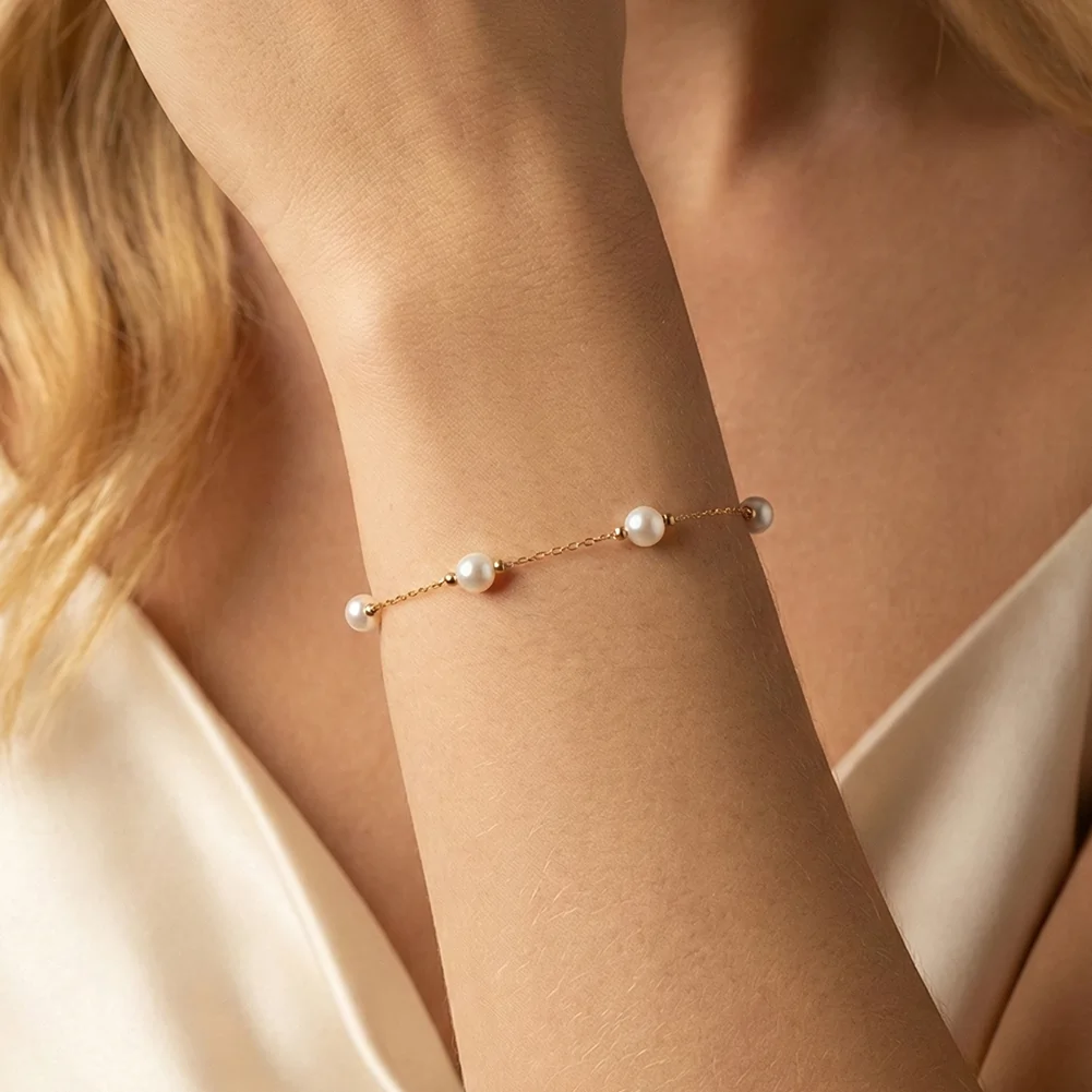 Există un ritm în lucrurile simple — cum se succed valurile, cum alternează liniștea cu mișcarea. Brățara Tide a fost gândită din acel ritm: perle shell albe și bile aurii care se alternează pe un lanț paperclip fin, creând un echilibru vizual calm și rafinat.