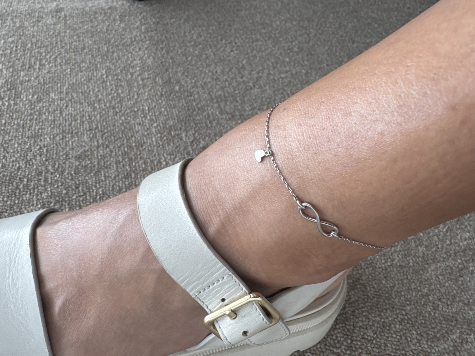 Brățara de picior Infinity Summer este realizată din argint 925 de cea mai bună calitate, placat cu un strat de rodiu care îl protejează de uzură și îi oferă o strălucire suplimentară. Propunerea noastră? O selecție unică de forme, alese pentru a exprima un stil fermecător – feminitate delicată, sensibilitate romantică. Linii simple și inserții cu cristale de zirconiu ce creează o impresie de tinerețe atemporală. Astfel, bijuteriile NURIA reprezintă alegerea potrivită atât pentru zi, cât și pentru seară.