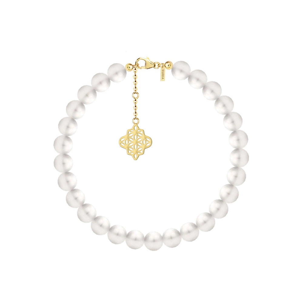 INNER CODE este alcătuită dintr-un șir de perle naturale de cultură. Sistemul de închidere, lănțișorul de susținere și simbolul sunt realizate din argint placat cu aur care îl protejează de uzură și îi oferă o strălucire suplimentară. Propunerea noastră? O selecție unică de forme, alese pentru a exprima un stil fermecător – feminitate delicată, sensibilitate romantică. Linii simple și inserții cu cristale de zirconiu ce creează o impresie de tinerețe atemporală. Astfel, bijuteriile NURIA reprezintă alegerea potrivită atât pentru zi, cât și pentru seară.