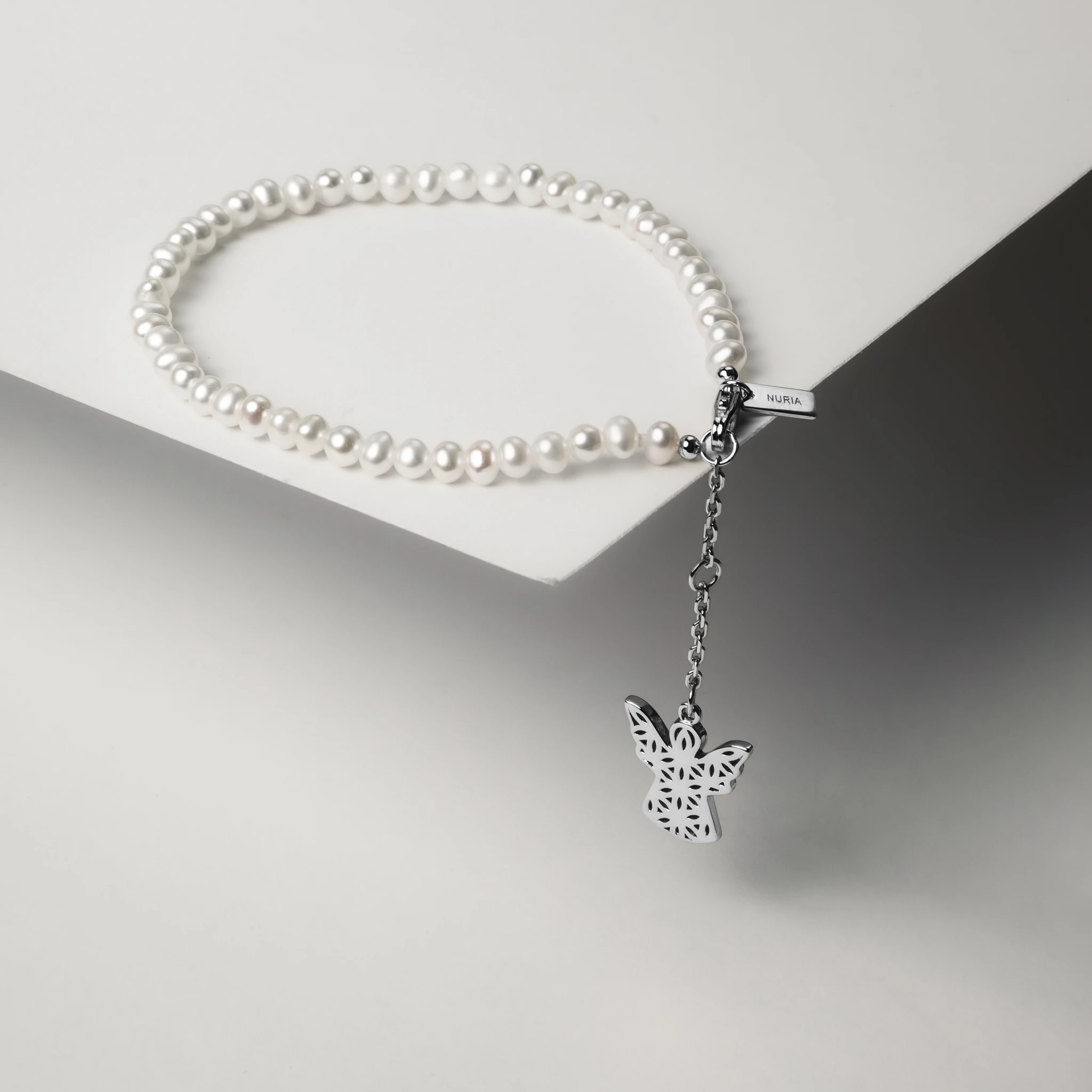 INNER CODE este alcătuită dintr-un șir de perle naturale de cultură. Sistemul de închidere, lănțișorul de susținere și simbolul sunt realizate din argint placat cu rodiu care îl protejează de uzură și îi oferă o strălucire suplimentară. Propunerea noastră? O selecție unică de forme, alese pentru a exprima un stil fermecător – feminitate delicată, sensibilitate romantică. Linii simple și inserții cu cristale de zirconiu ce creează o impresie de tinerețe atemporală. Astfel, bijuteriile NURIA reprezintă alegerea potrivită atât pentru zi, cât și pentru seară.