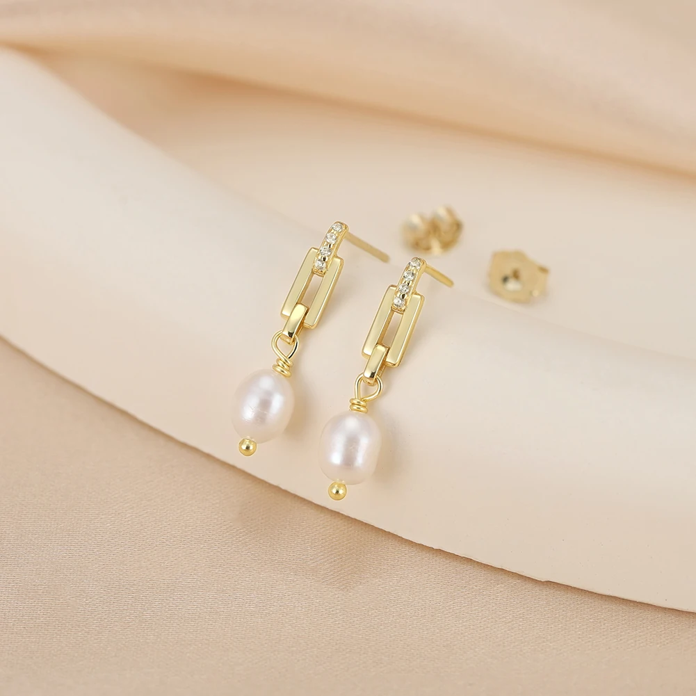 Cercei din argint cu perle naturale de cultură Paperclip Auriu