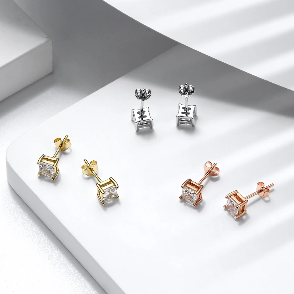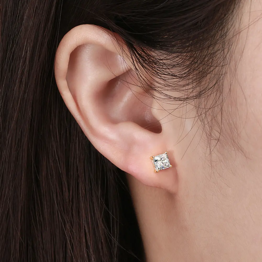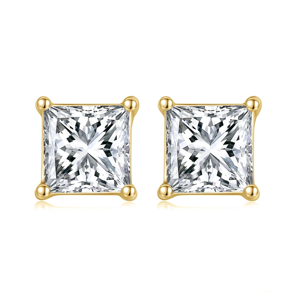 Cristal Auriu sunt cercei stud care demonstrează că geometria poate fi elegantă. Zirconiul cu tăietură princess de 4.5 mm, cu fațetele lui drepte și unghiurile precise, dispersează lumina cu o intensitate aparte, diferită și mai directă decât o tăietură rotundă. O claritate care se simte înainte să fie analizată.