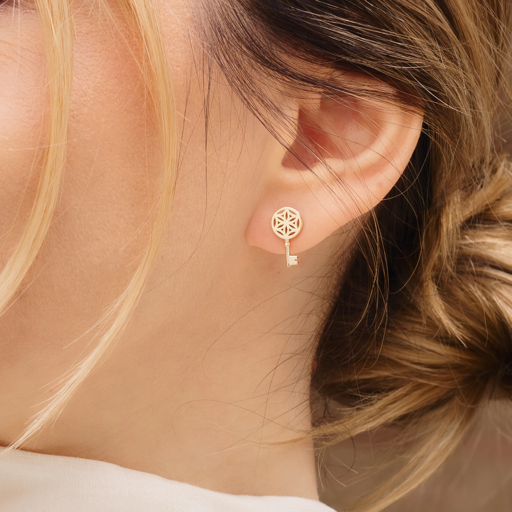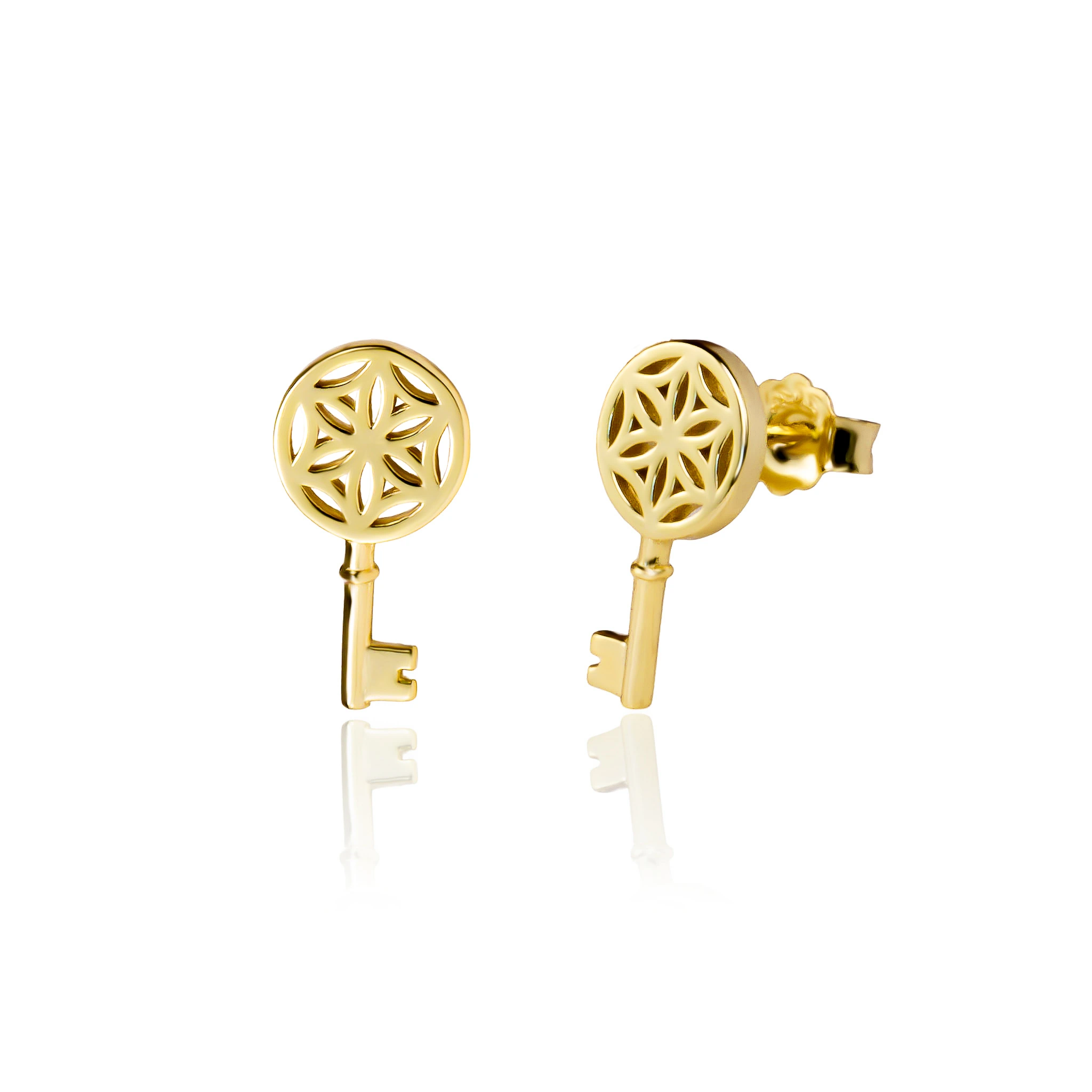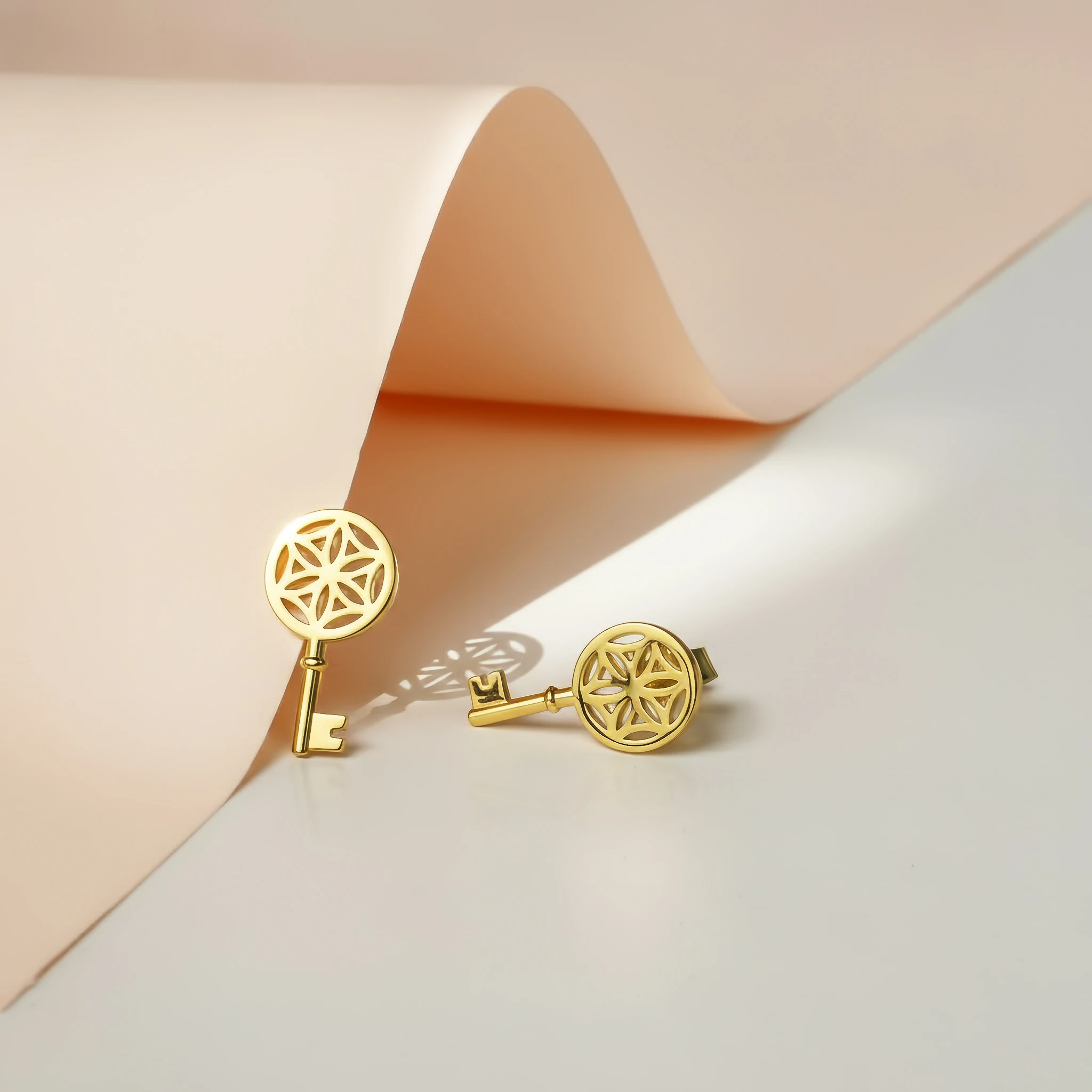 Cerceii Cheie Auriu din colectia INNER CODE sunt realizați din argint placat cu aur care îl protejează de uzură și îi oferă o strălucire suplimentară. Designul lor minimalist și simetric oferă un aspect elegant și echilibrat, potrivit atât pentru purtare zilnică, cât și pentru ocazii speciale. Propunerea noastră? O selecție unică de forme, alese pentru a exprima un stil fermecător – feminitate delicată, sensibilitate romantică. Linii simple și inserții cu cristale de zirconiu ce creează o impresie de tinerețe atemporală. Astfel, bijuteriile NURIA reprezintă alegerea potrivită atât pentru zi, cât și pentru seară.