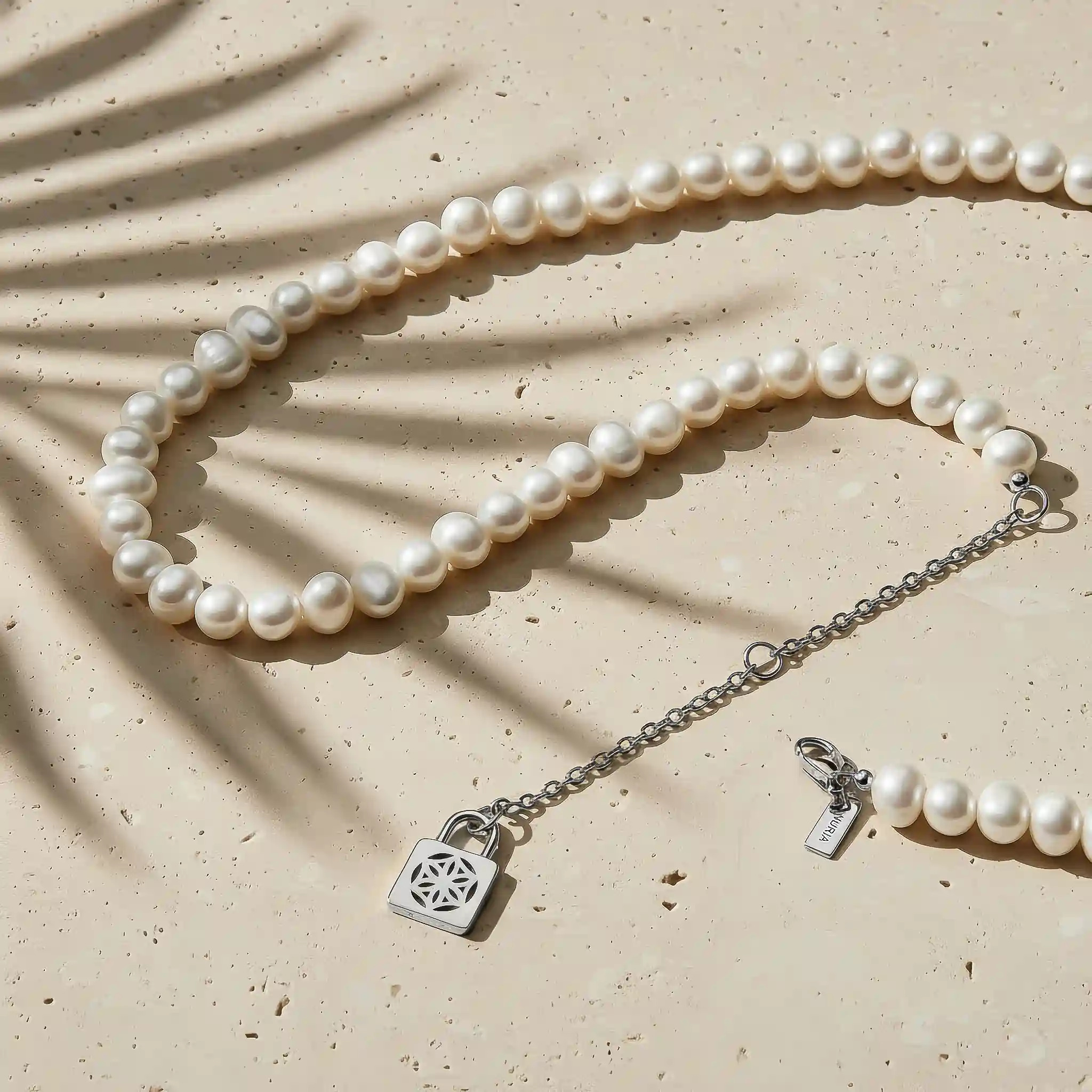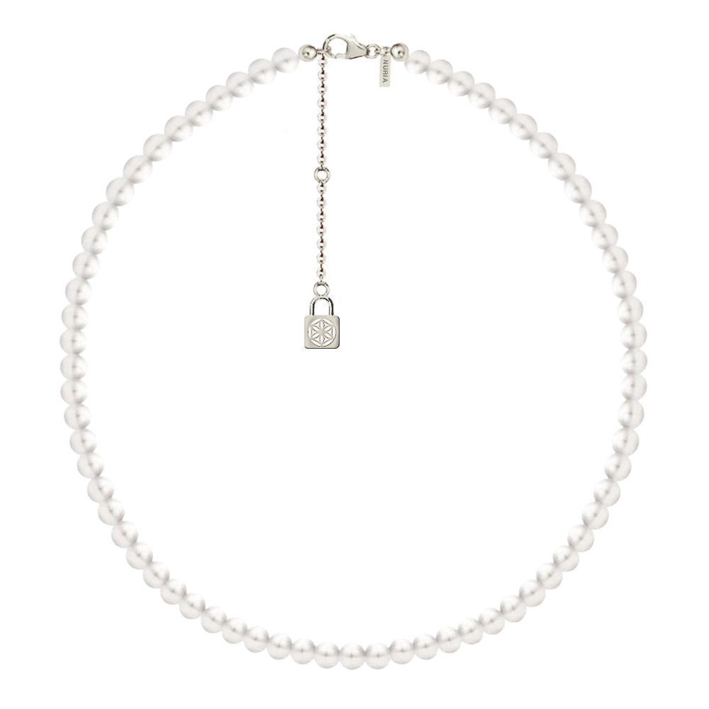 INNER CODE este compus dintr-un șir de perle naturale de cultură. Sistemul de închidere, lănțișorul de susținere și simbolul sunt realizate din argint placat cu rodiu care îl protejează de uzură și îi oferă o strălucire suplimentară. Propunerea noastră? O selecție unică de forme, alese pentru a exprima un stil fermecător – feminitate delicată, sensibilitate romantică. Linii simple și inserții cu cristale de zirconiu ce creează o impresie de tinerețe atemporală. Astfel, bijuteriile NURIA reprezintă alegerea potrivită atât pentru zi, cât și pentru seară.