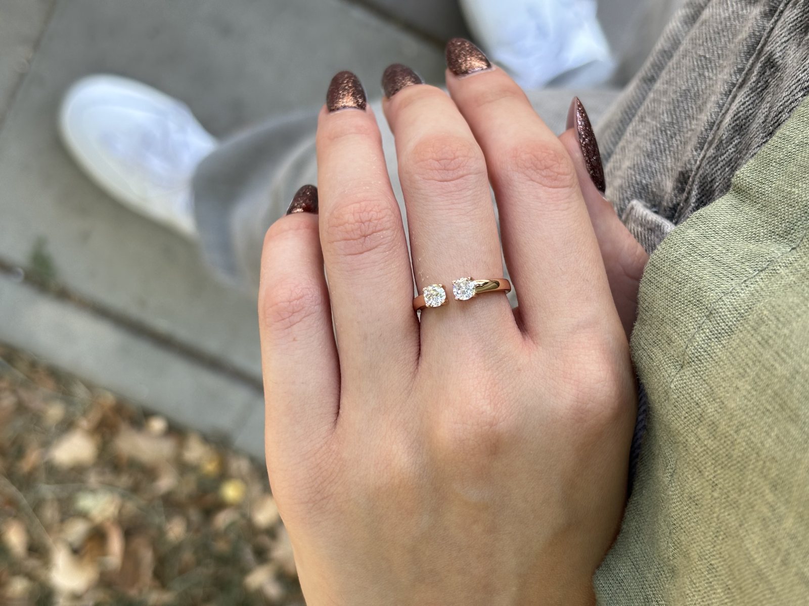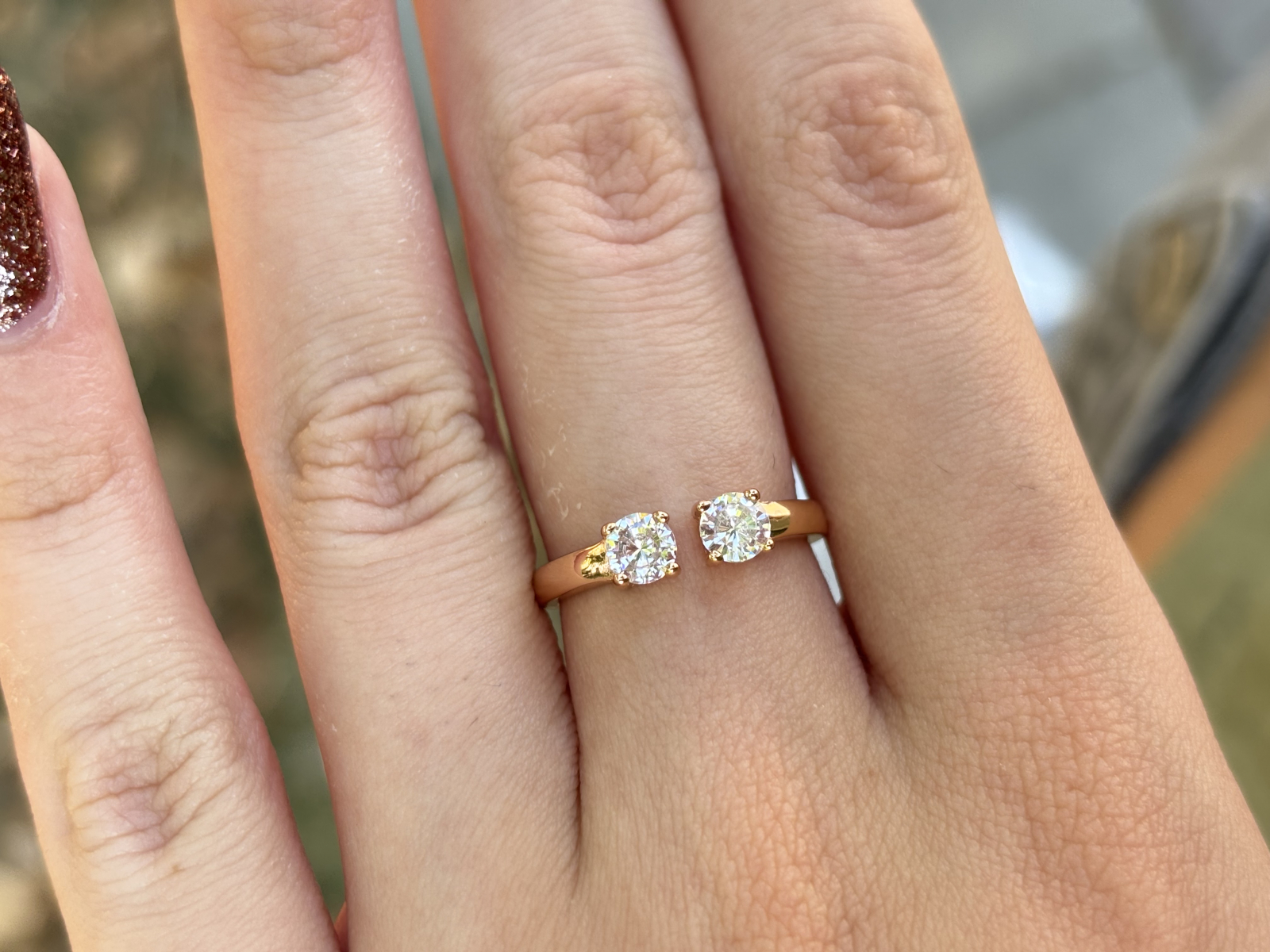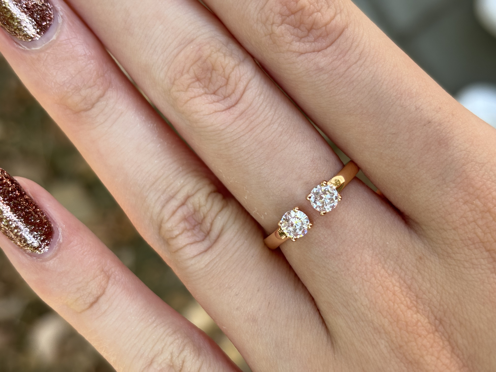 Inelul Luminous Harmony este o expresie a eleganței ludice, cu un design deschis ce poartă două diamante strălucitoare ca două note muzicale într-o simfonie de lumină. Realizat din argint 925 placat cu aur, acest inel celebrează dualitatea și echilibrul, făcându-l un accesoriu perfect atât pentru zi, cât și pentru ocaziile speciale. Este un omagiu adus frumuseții simple, dar impunătoare.