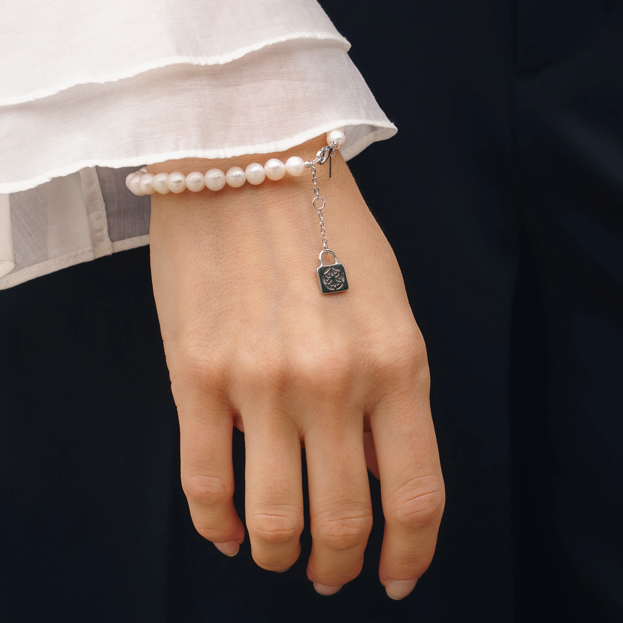 Poartă-l ca promisiune că îți vei onora mereu valorile și adevărul tău. Brățara Sigiliu din colecția INNER CODE este alcătuită dintr-un șir de perle naturale de cultură. Sistemul de închidere, lănțișorul de susținere și simbolul sunt realizate din argint placat cu rodiu.