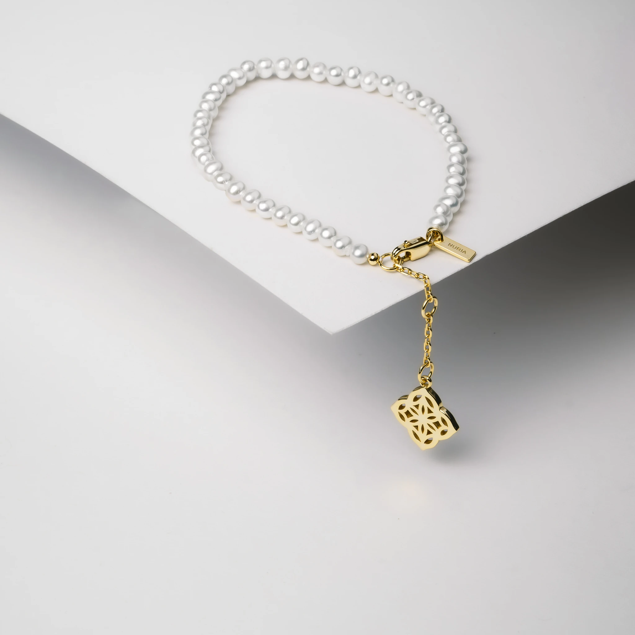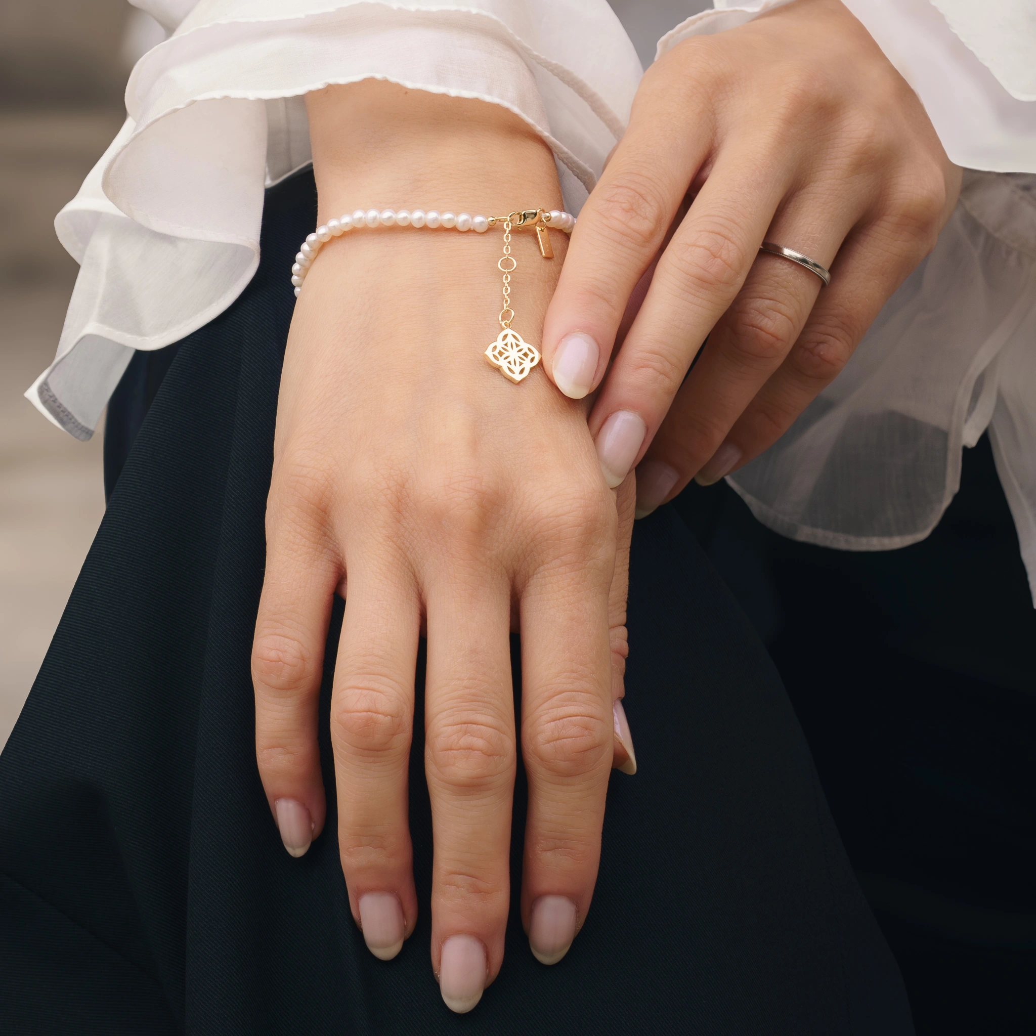 Brățară delicată și elegantă, realizată din perle naturale de cultură de dimensiuni mici. Designul combină armonios minimalismul contemporan cu simbolismul subtil, transformând brățara într-o bijuterie versatilă — potrivită atât pentru purtarea zilnică, cât și pentru ocazii speciale.