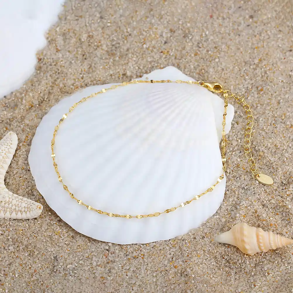 Se poartă singură sau suprapusă cu alte piese NURIA pentru un efect de layering la gleznă. Potrivită pentru o zi de vară sau pentru o seară în care vrei să adaugi ceva fin și discret unei ținute.