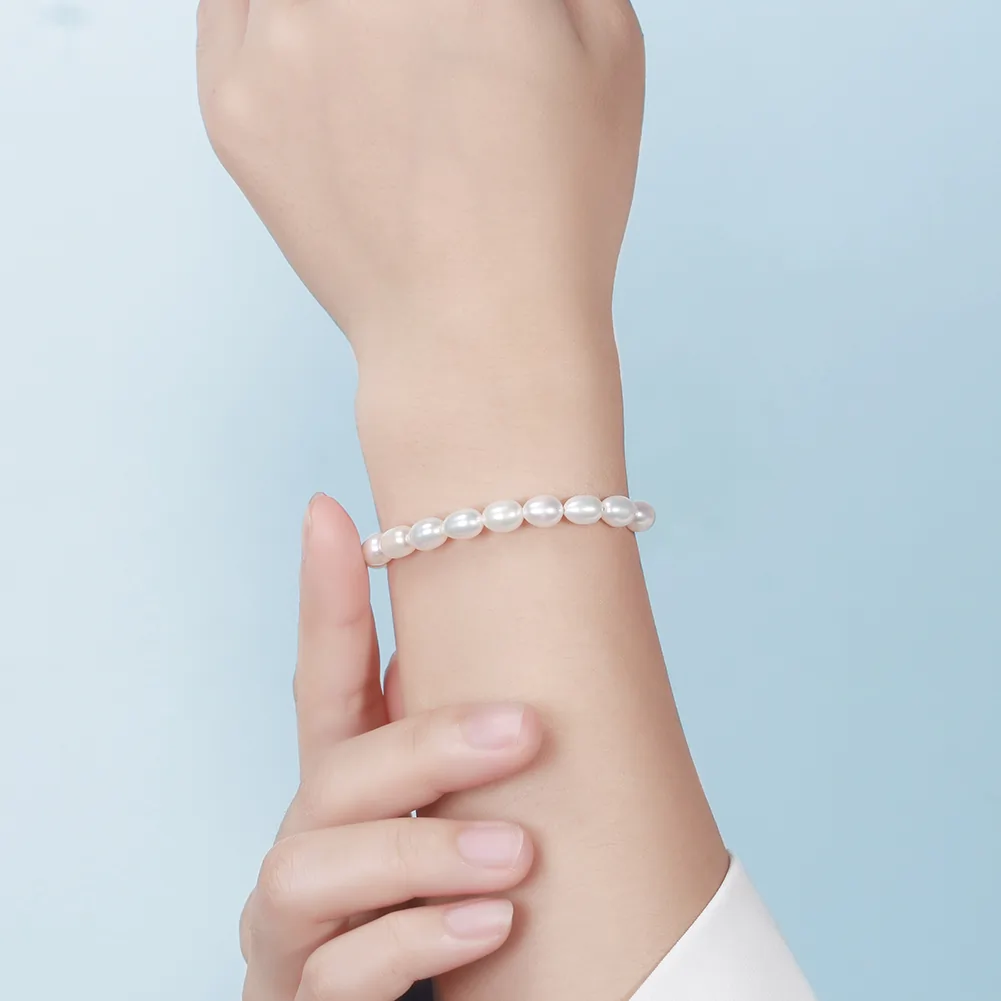 Perle naturale de cultură așezate una lângă alta, fiecare cu luciul și forma ei proprie. O brățară care nu are nevoie de nimic altceva pentru a-și face prezența simțită, elegantă în simplitatea ei și valoroasă prin natura materialului.