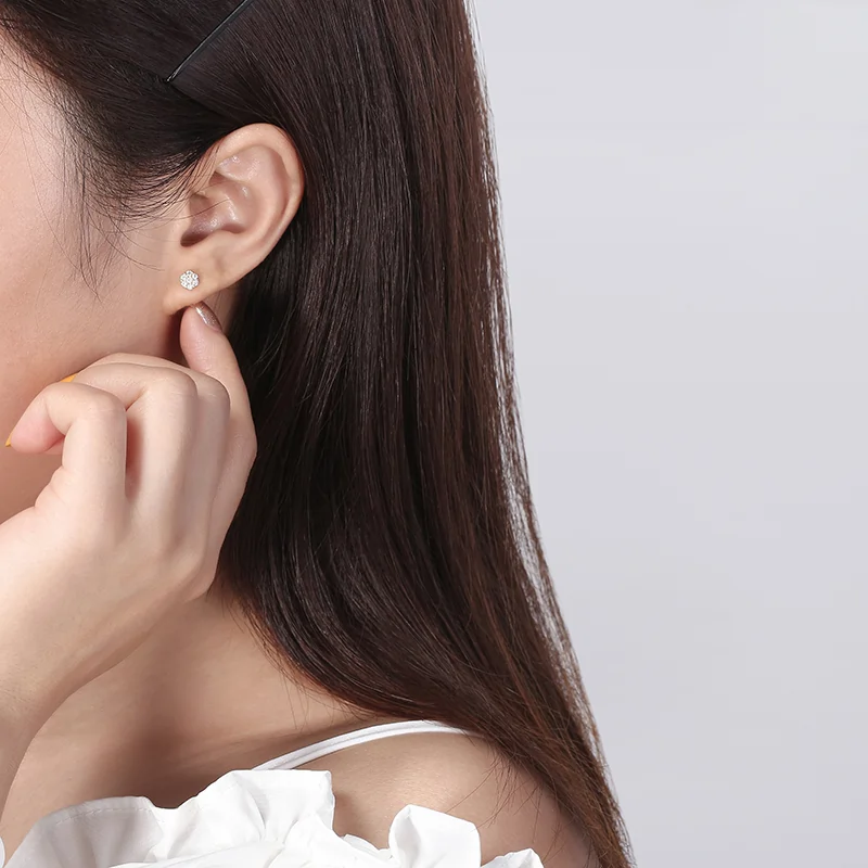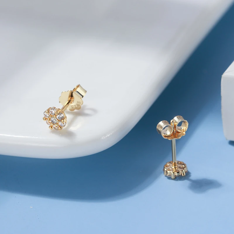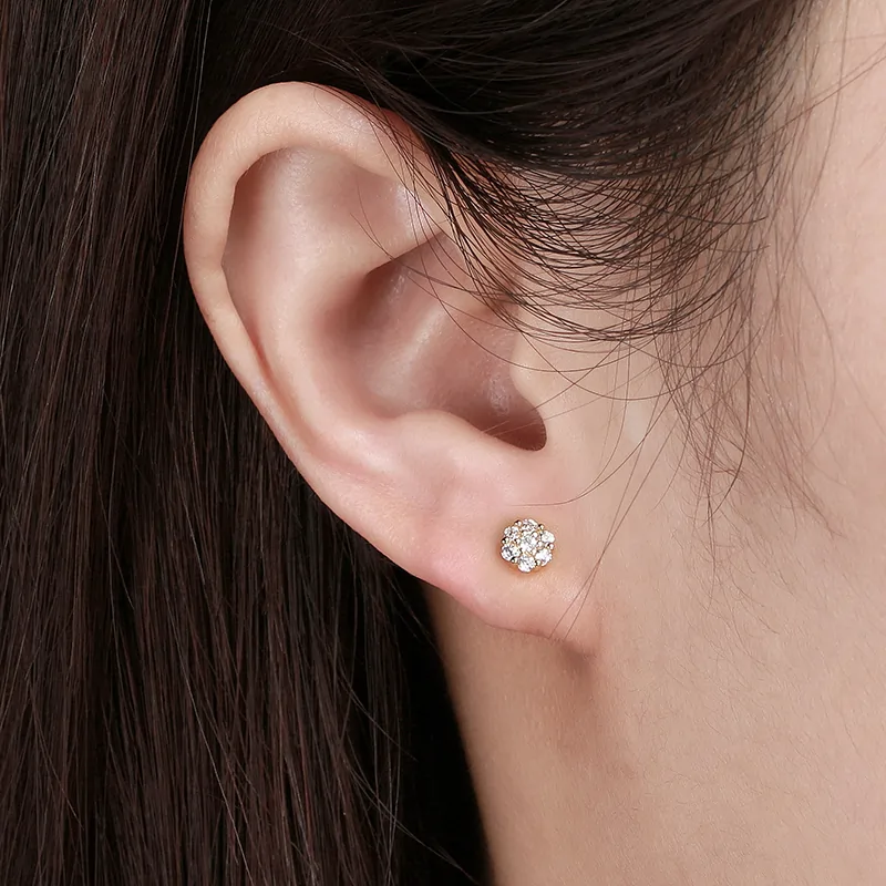 Fleur Auriu sunt cercei stud care dovedesc că dimensiunea nu definește impactul. Șapte zirconiuri rotunde brilliant, dispuse în formă de floare și prinse în monturi aurii rotunjite, creează împreună o sclipire concentrată și caldă, vizibilă la fiecare mișcare.