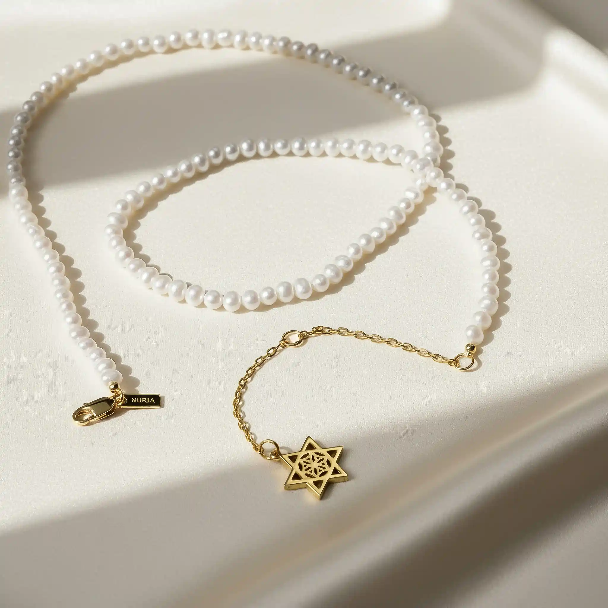 INNER CODE este compus dintr-un șir de perle naturale de cultură. Sistemul de închidere, lănțișorul de susținere și simbolul sunt realizate din argint placat cu aur care îl protejează de uzură și îi oferă o strălucire suplimentară. Propunerea noastră? O selecție unică de forme, alese pentru a exprima un stil fermecător – feminitate delicată, sensibilitate romantică. Linii simple și inserții cu cristale de zirconiu ce creează o impresie de tinerețe atemporală. Astfel, bijuteriile NURIA reprezintă alegerea potrivită atât pentru zi, cât și pentru seară.
