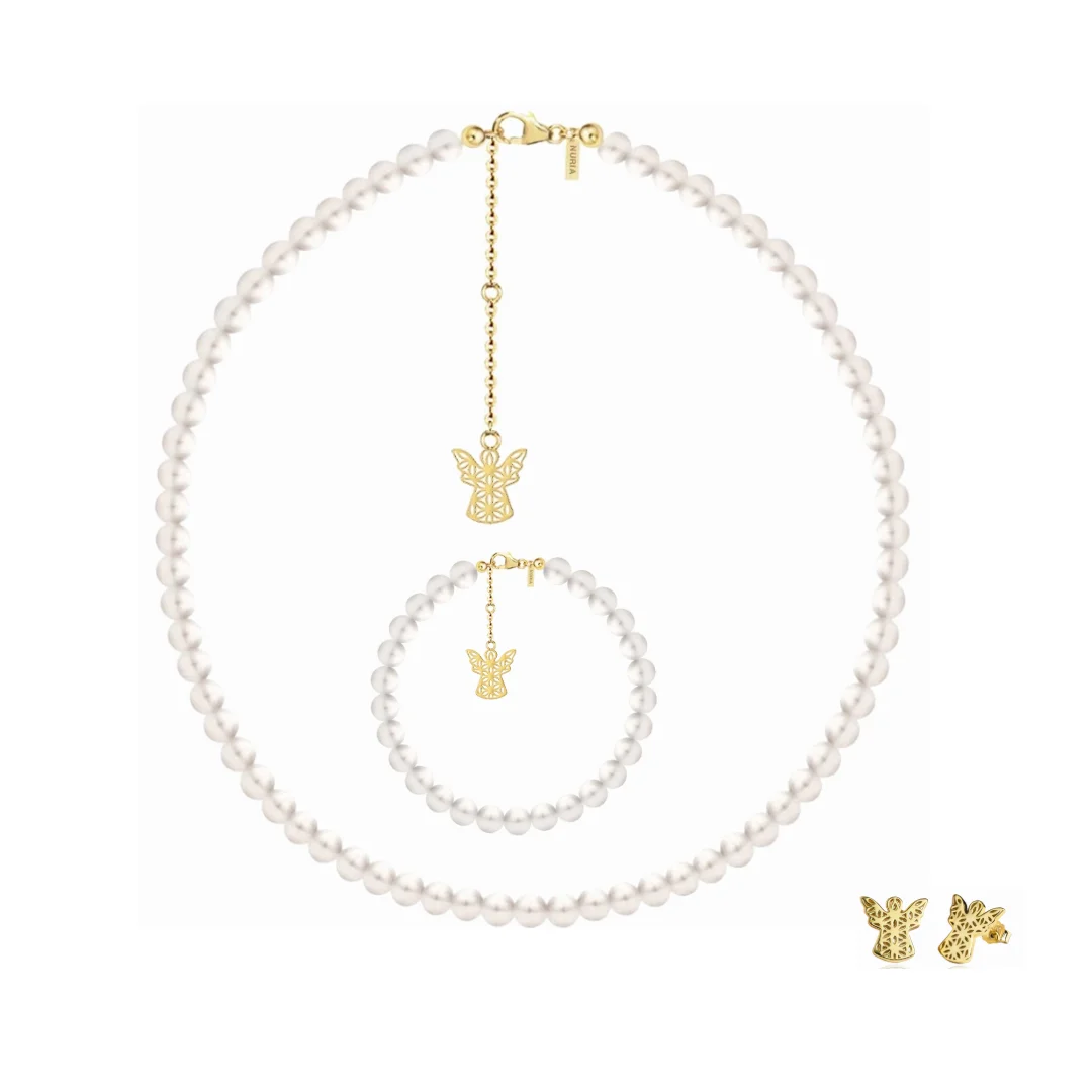 Colier Argint cu perle naturale de cultură mici Înger Auriu