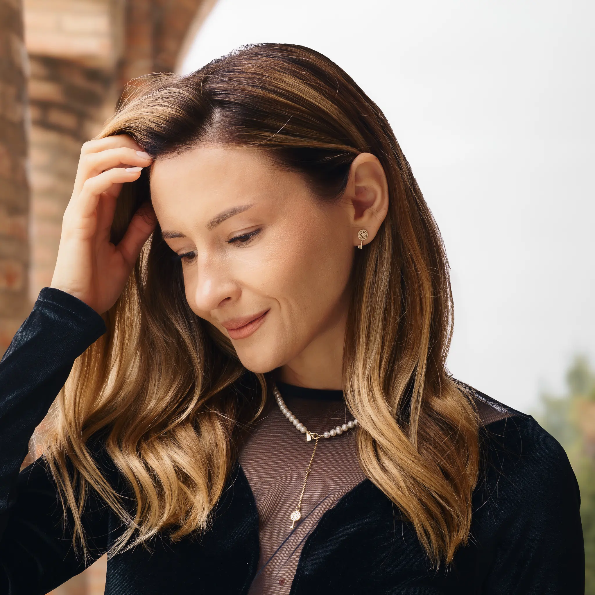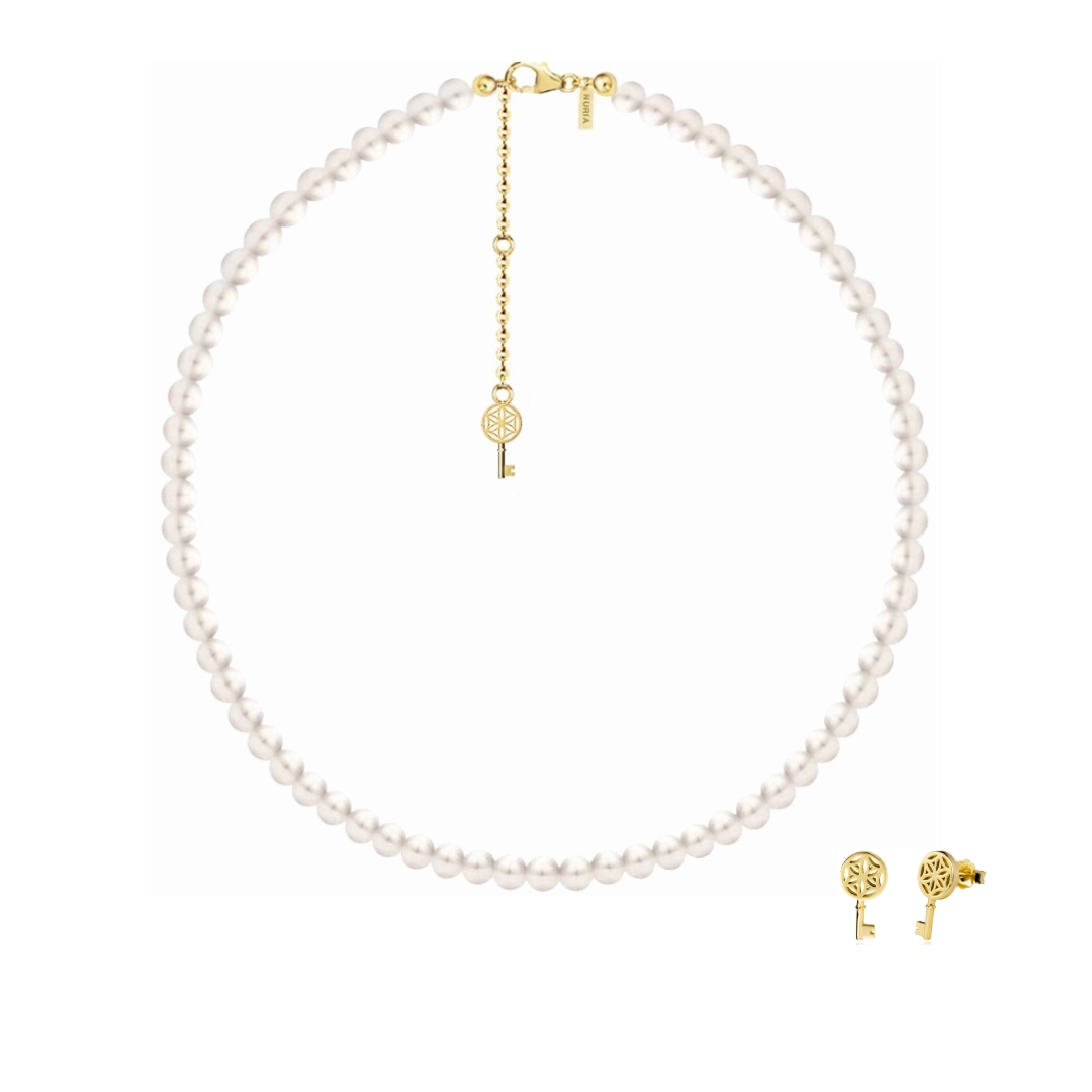 Colierul Cheie din colectia INNER CODE este compus dintr-un șir de perle naturale de cultură. Sistemul de închidere, lănțișorul de susținere și simbolul sunt realizate din argint placat cu aur care îl protejează de uzură și îi oferă o strălucire suplimentară. Propunerea noastră? O selecție unică de forme, alese pentru a exprima un stil fermecător – feminitate delicată, sensibilitate romantică. Linii simple și inserții cu cristale de zirconiu ce creează o impresie de tinerețe atemporală. Astfel, bijuteriile NURIA reprezintă alegerea potrivită atât pentru zi, cât și pentru seară.
