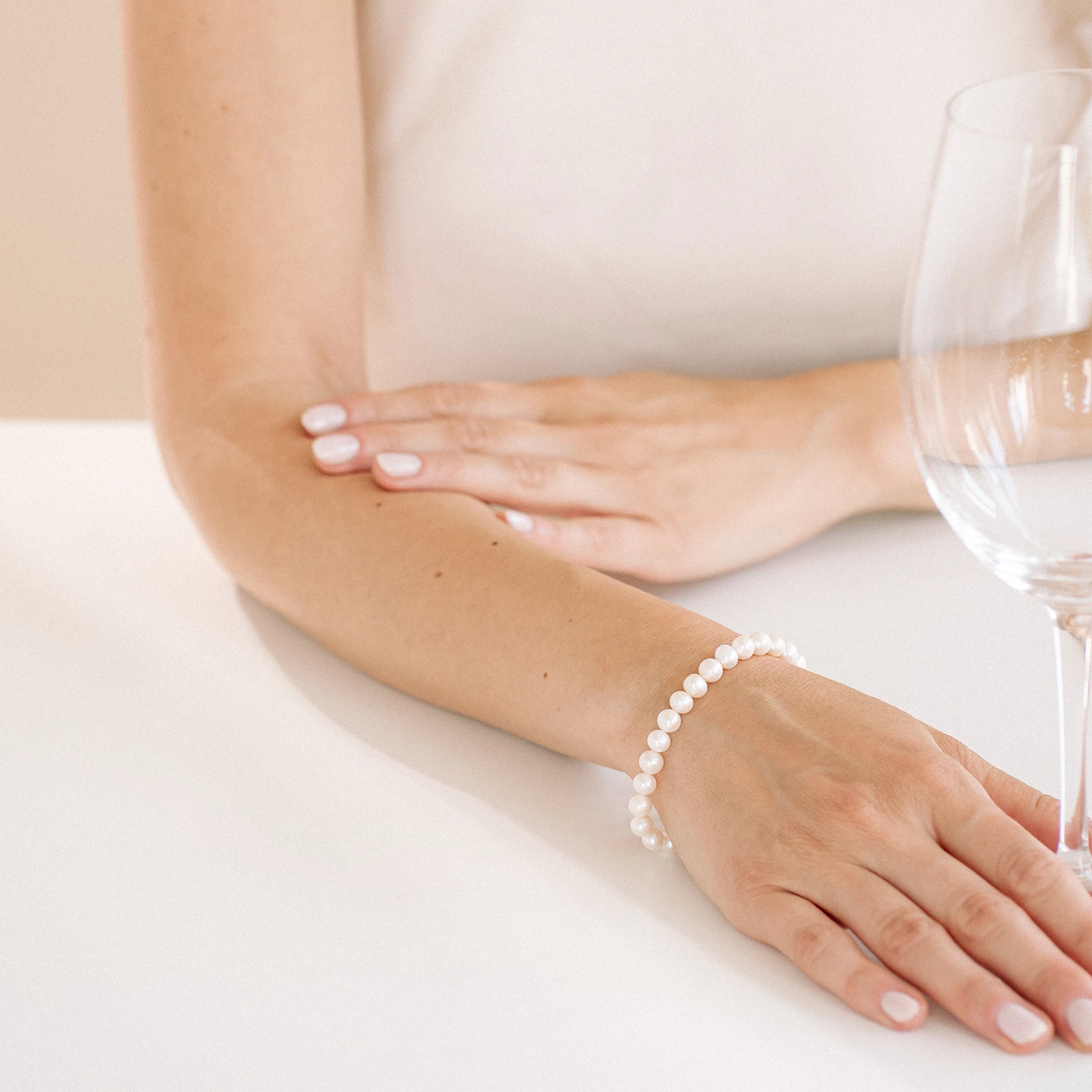 Brățară Argint cu perle naturale de cultură Large Pearl String ArgintiuBrățara Large Pearl String este compusă dintr-un șir de perle naturale de cultură. Sistemul de închidere este realizat din argint placat cu rodiu care îl protejează de uzură și îi oferă o strălucire suplimentară. Propunerea noastră? O selecție unică de forme, alese pentru a exprima un stil fermecător – feminitate delicată, sensibilitate romantică. Linii simple și inserții cu cristale de zirconiu ce creează o impresie de tinerețe atemporală. Astfel, bijuteriile NURIA reprezintă alegerea potrivită atât pentru zi, cât și pentru seară.