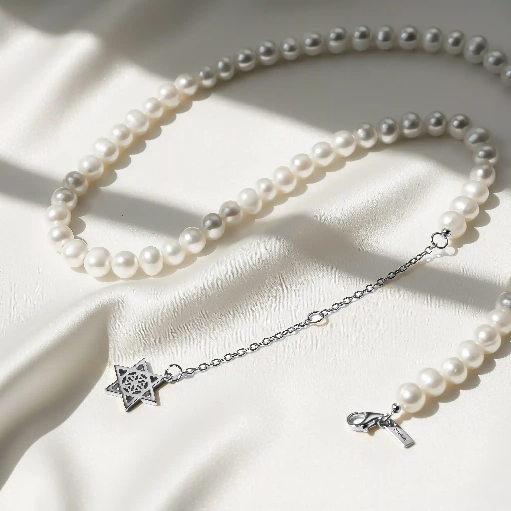 Colier Argint cu perle naturale de cultură mari Stea Argintiu