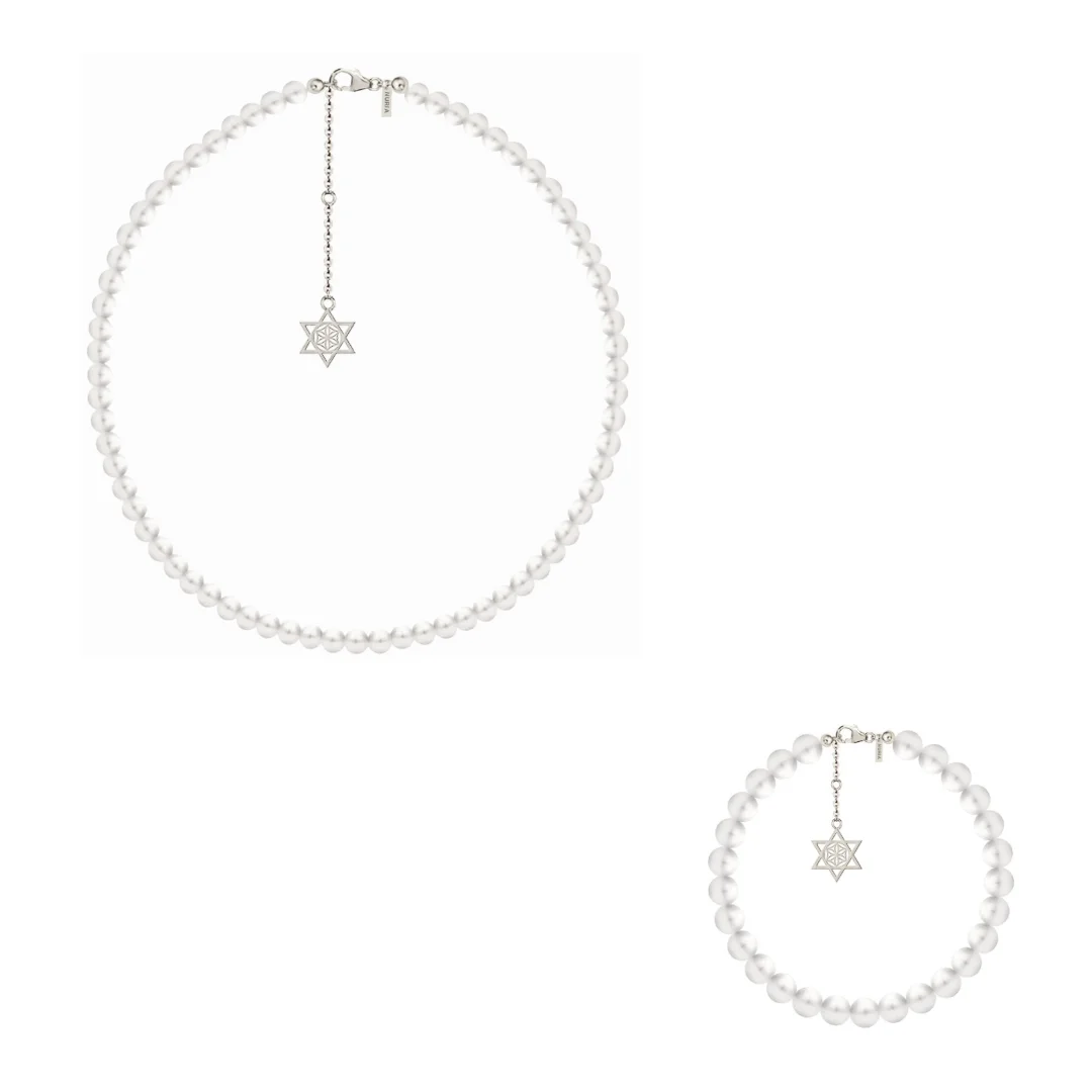 Set Colier și Brățară Argint cu perle naturale de cultură mari Stea Argintiu