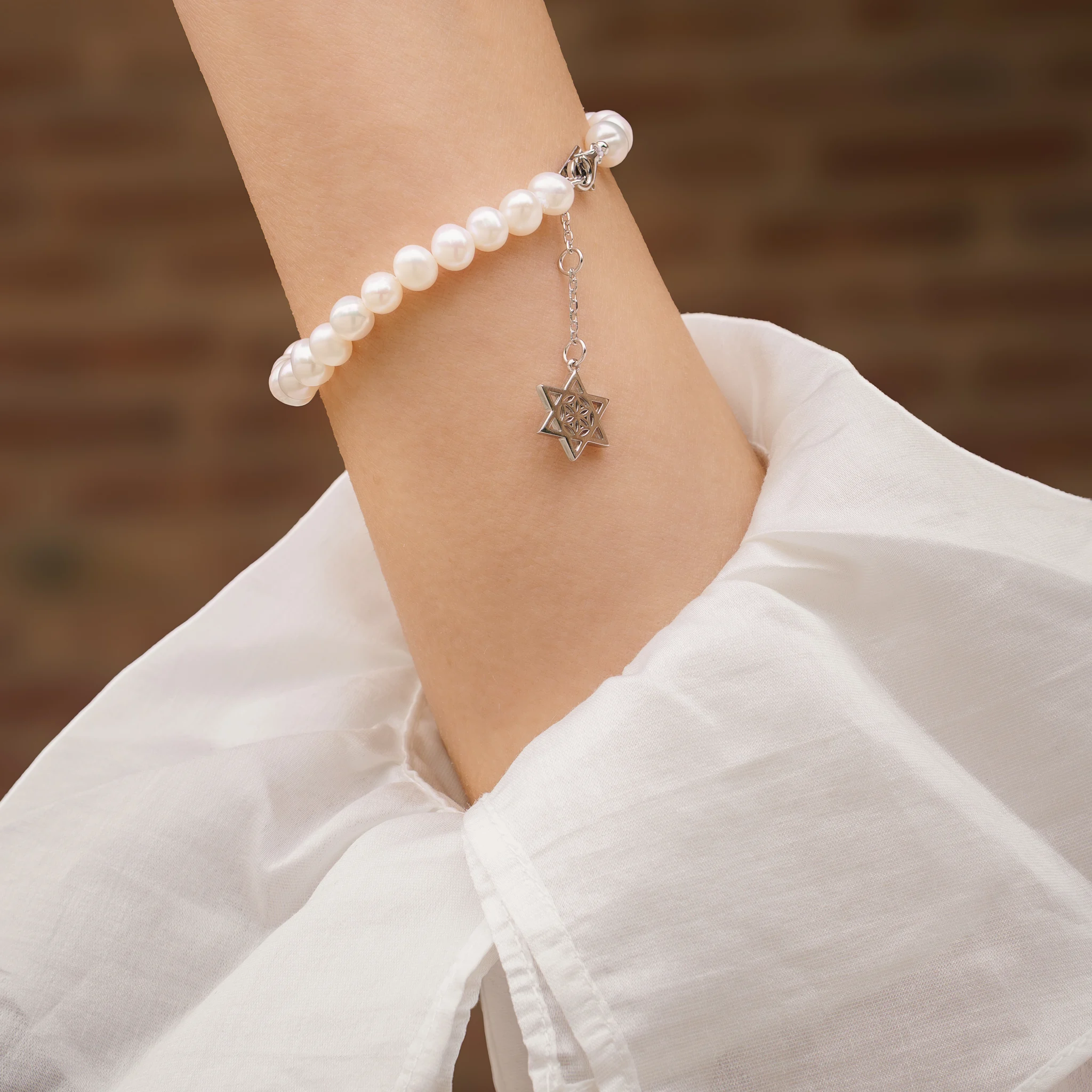 Brățară Argint cu perle naturale de cultură mari Stea Argintiu