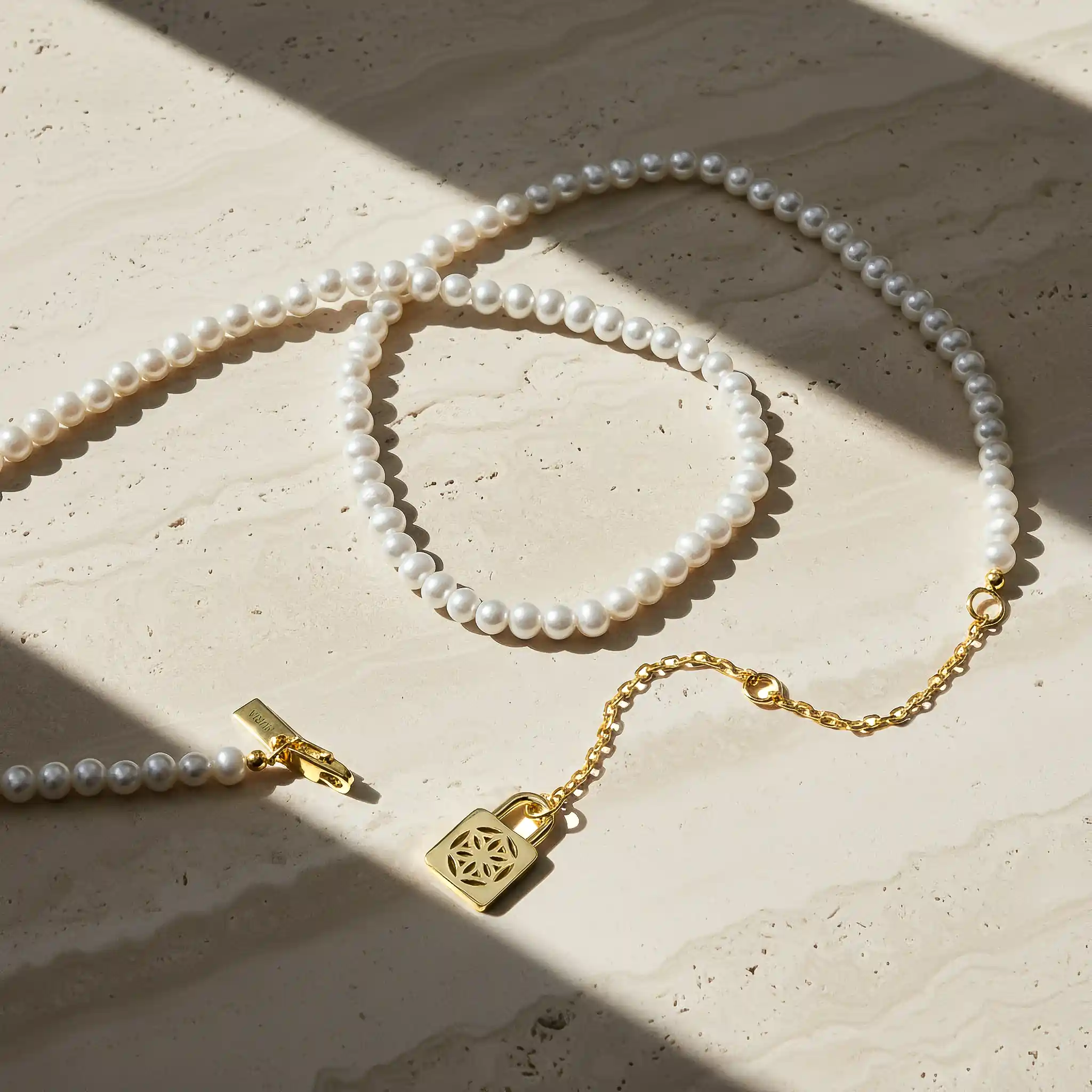INNER CODE este compus dintr-un șir de perle naturale de cultură. Sistemul de închidere, lănțișorul de susținere și simbolul sunt realizate din argint placat cu aur care îl protejează de uzură și îi oferă o strălucire suplimentară. Propunerea noastră? O selecție unică de forme, alese pentru a exprima un stil fermecător – feminitate delicată, sensibilitate romantică. Linii simple și inserții cu cristale de zirconiu ce creează o impresie de tinerețe atemporală. Astfel, bijuteriile NURIA reprezintă alegerea potrivită atât pentru zi, cât și pentru seară.