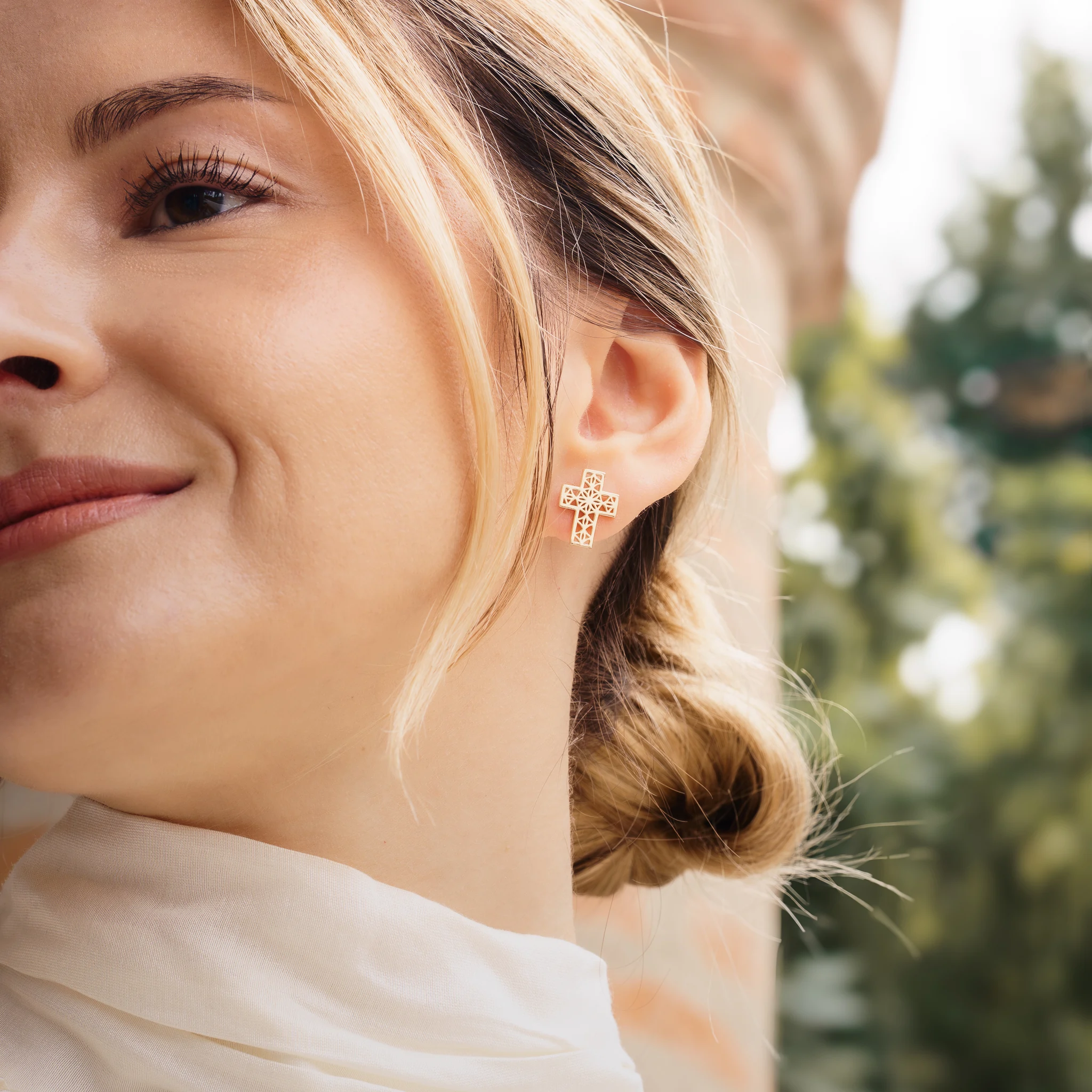 Cerceii Cruce Auriu din colectia INNER CODE sunt realizați din argint placat cu aur care îl protejează de uzură și îi oferă o strălucire suplimentară. Designul lor minimalist și simetric oferă un aspect elegant și echilibrat, potrivit atât pentru purtare zilnică, cât și pentru ocazii speciale. Propunerea noastră? O selecție unică de forme, alese pentru a exprima un stil fermecător – feminitate delicată, sensibilitate romantică. Linii simple și inserții cu cristale de zirconiu ce creează o impresie de tinerețe atemporală. Astfel, bijuteriile NURIA reprezintă alegerea potrivită atât pentru zi, cât și pentru seară.