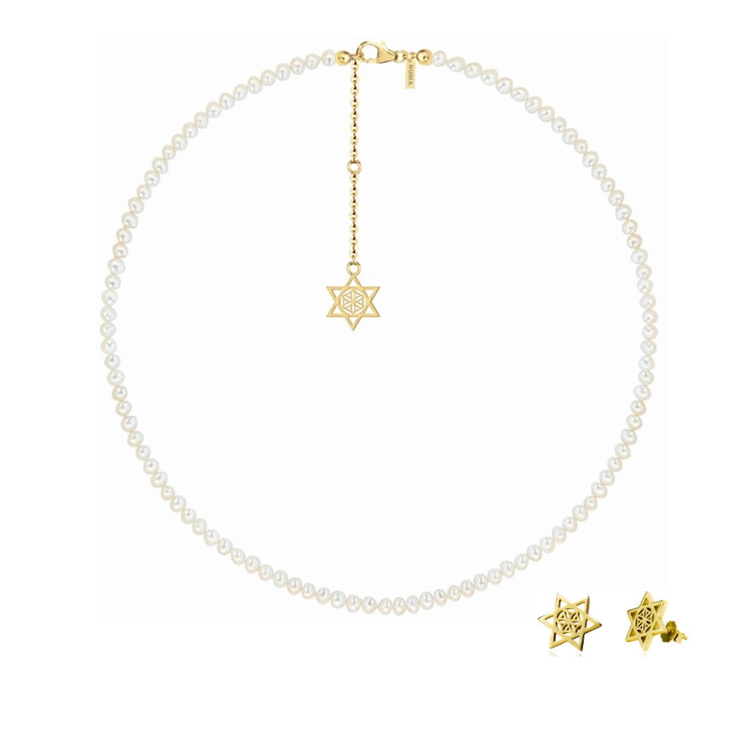 Set Colier și Cercei din argint cu perle naturale de cultură mici Stea Auriu