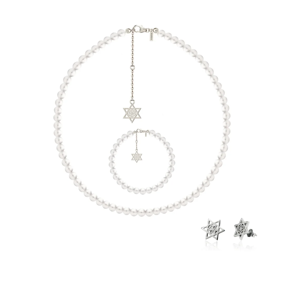 Set Colier, Brățară și Cercei din argint cu perle naturale de cultură mari Stea Argintiu