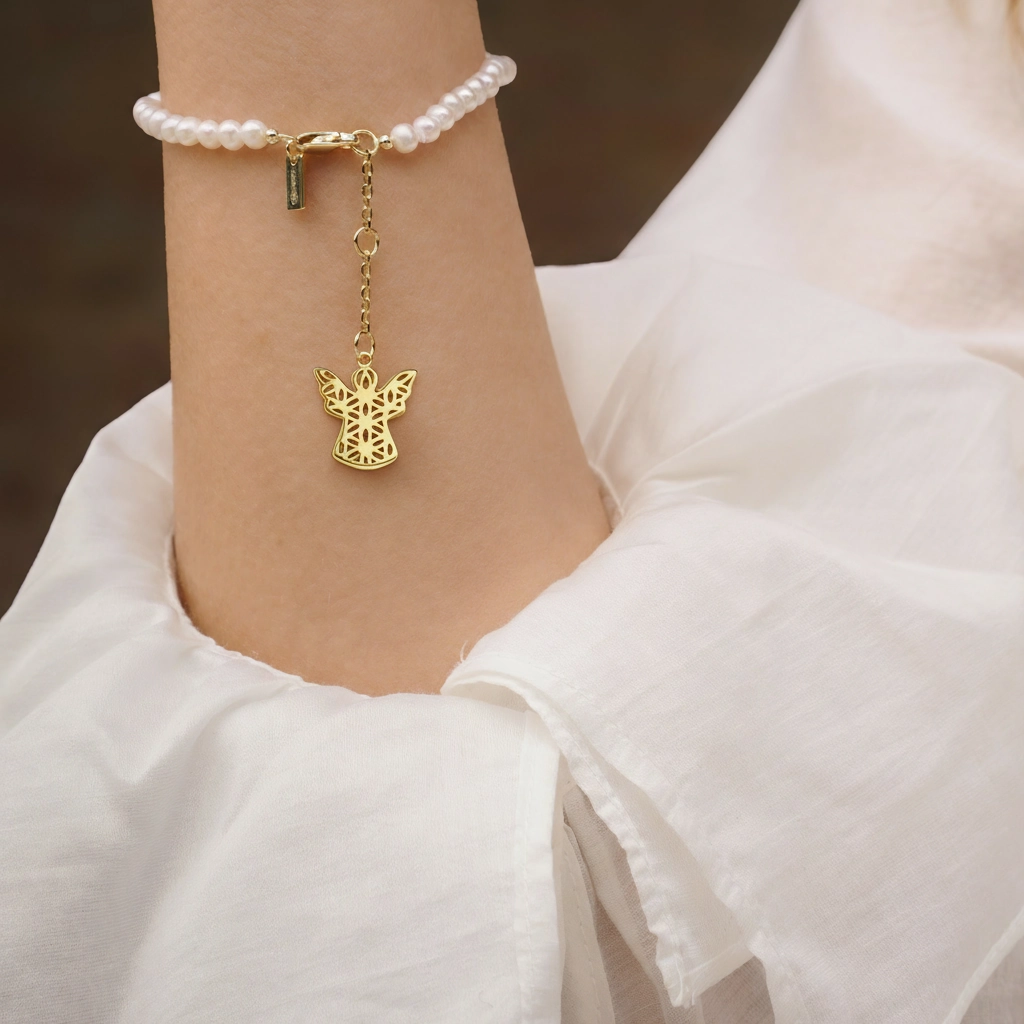 Brățară Argint cu perle naturale de cultură mici Înger Auriu