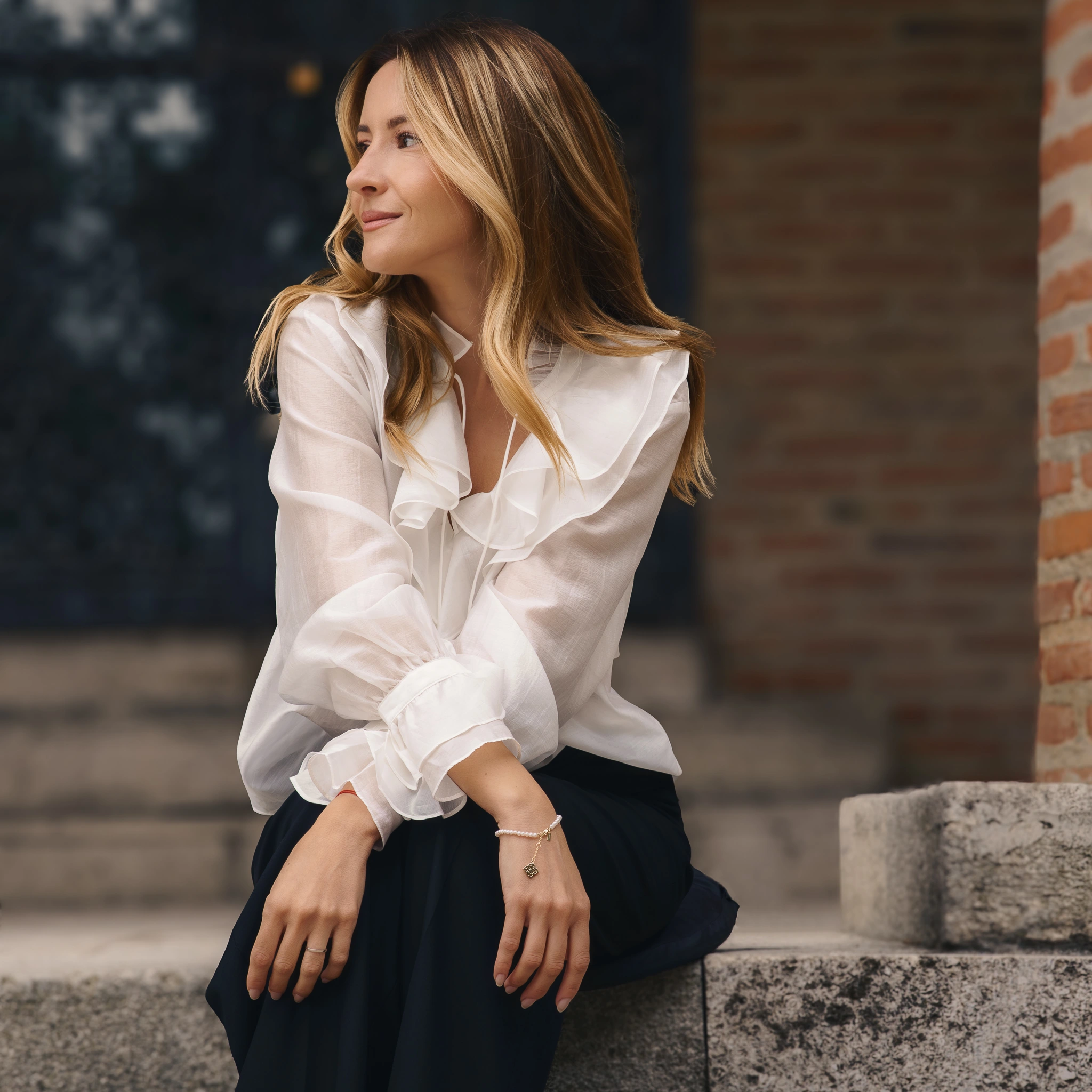 Brățară delicată și elegantă, realizată din perle naturale de cultură de dimensiuni mici. Designul combină armonios minimalismul contemporan cu simbolismul subtil, transformând brățara într-o bijuterie versatilă — potrivită atât pentru purtarea zilnică, cât și pentru ocazii speciale.